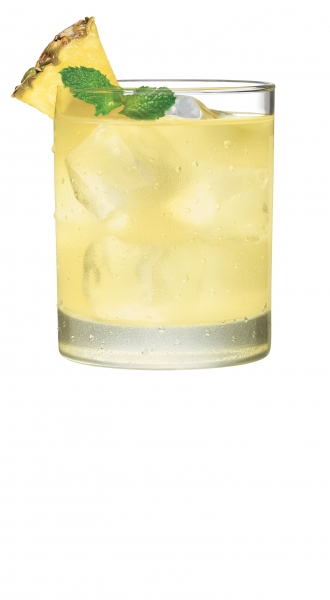 Muddle cucumber and pineapple in a mixing glass. Add remaining ingredients and shake with ice. Strain into a rocks glass filled with ice. Garnish with a light sprinkle of salt.